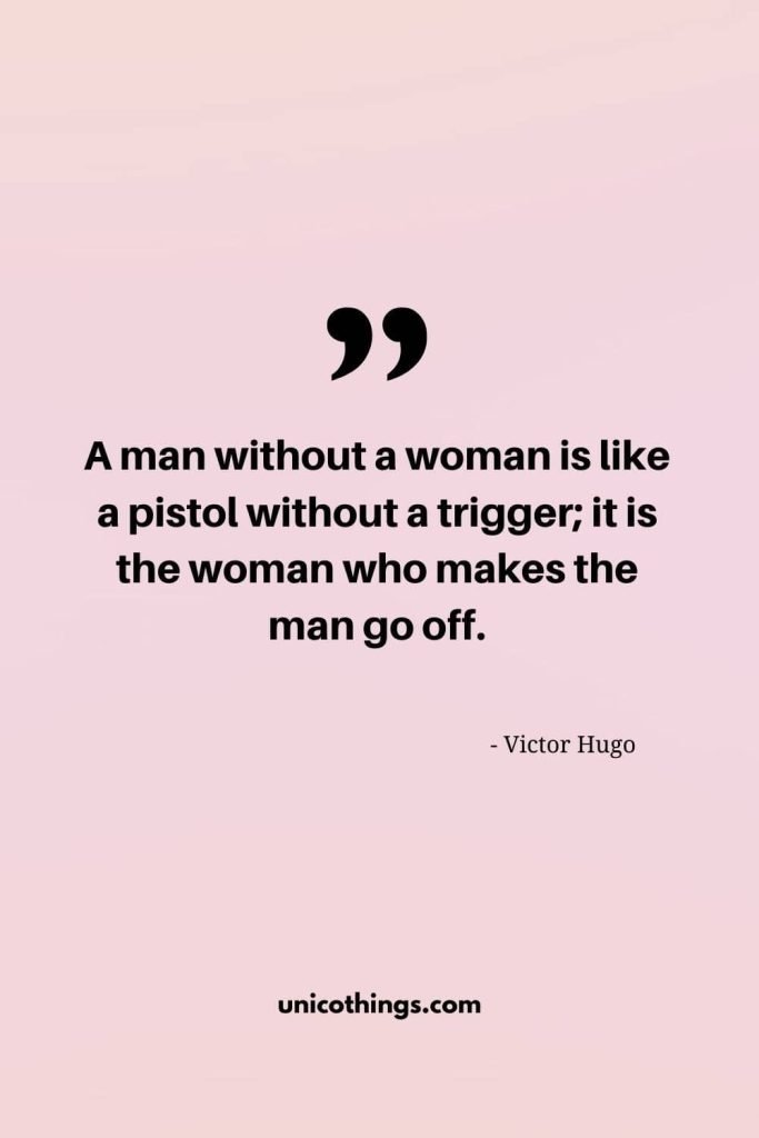 130. “A man without a woman is like a pistol without a trigger; it is the woman who makes the man go off.” – Victor Hugo