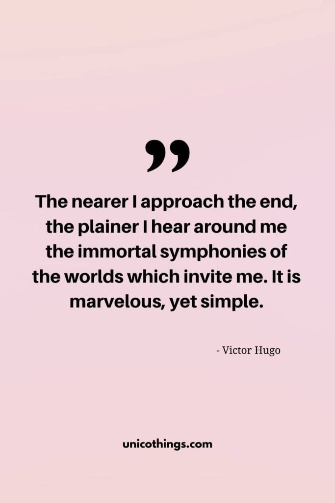 50. “The nearer I approach the end, the plainer I hear around me the immortal symphonies of the worlds which invite me. It is marvelous, yet simple.” – Victor Hugo