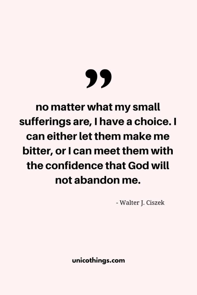 30. “no matter what my small sufferings are, I have a choice. I can either let them make me bitter, or I can meet them with the confidence that God will not abandon me.” – Walter J. Ciszek