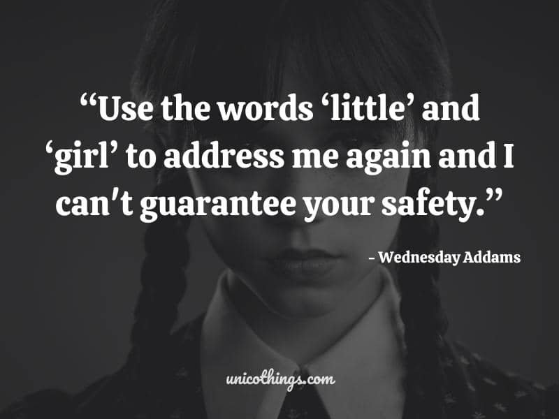 1. “Use the words ‘little’ and ‘girl’ to address me again and I can’t guarantee your safety.” ~ Wednesday Addams