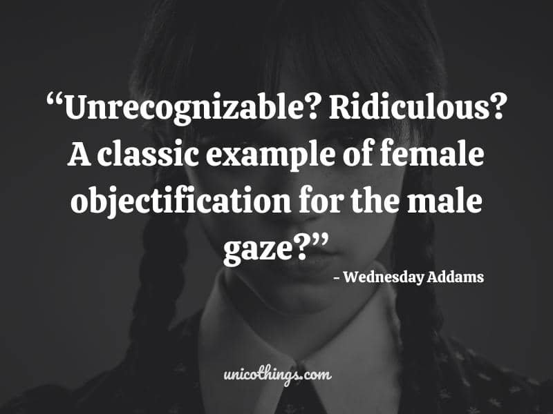 16. “Unrecognizable? Ridiculous? A classic example of female objectification for the male gaze?” ~ Wednesday Addams