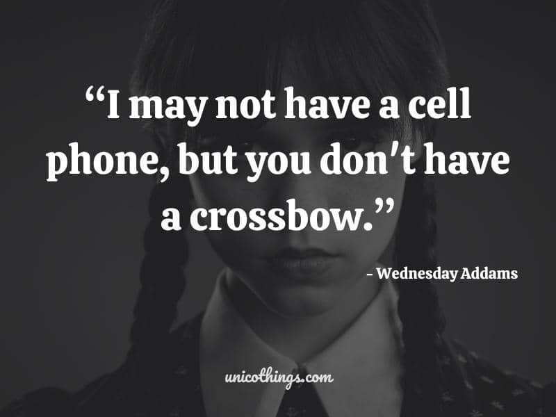 24. “I may not have a cell phone, but you don’t have a crossbow.” ~ Wednesday Addams