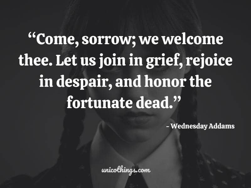 32. “Come, sorrow; we welcome thee. Let us join in grief, rejoice in despair, and honor the fortunate dead.” ~ Wednesday Addams