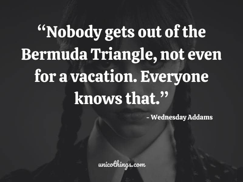 40. “Nobody gets out of the Bermuda Triangle, not even for a vacation. Everyone knows that.” ~ Wednesday Addams