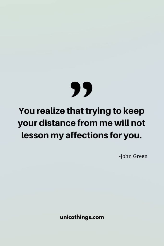 84. “You realize that trying to keep your distance from me will not lesson my affections for you.” – John Green