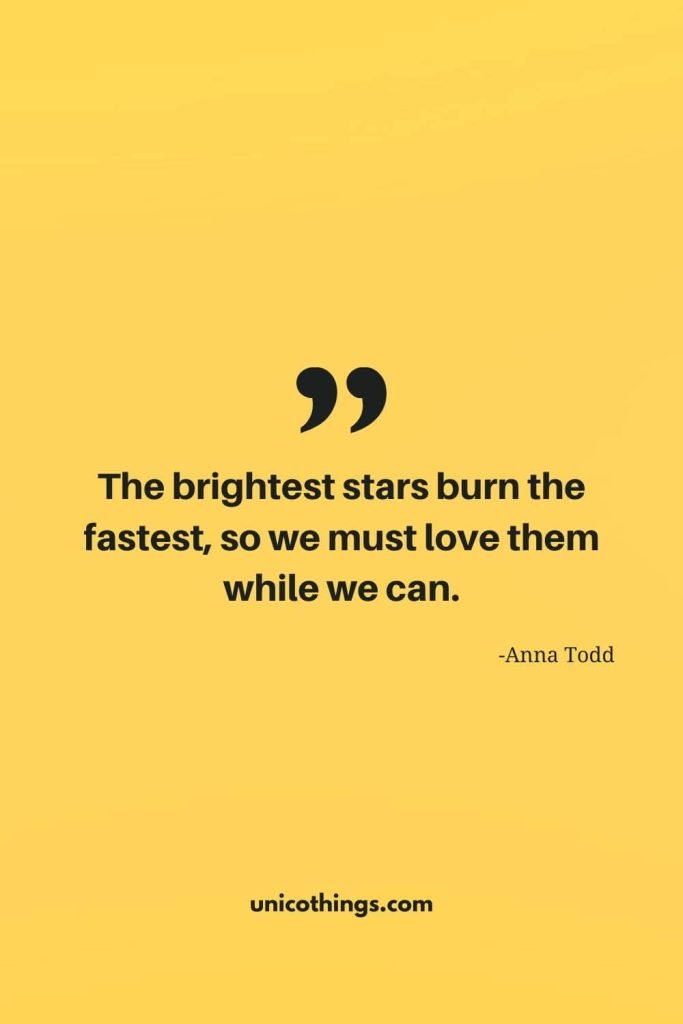 72. “The brightest stars burn the fastest, so we must love them while we can.” – Anna Todd
