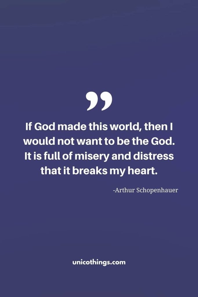 12. “If God made this world, then I would not want to be the God. It is full of misery and distress that it breaks my heart.” – Arthur Schopenhauer