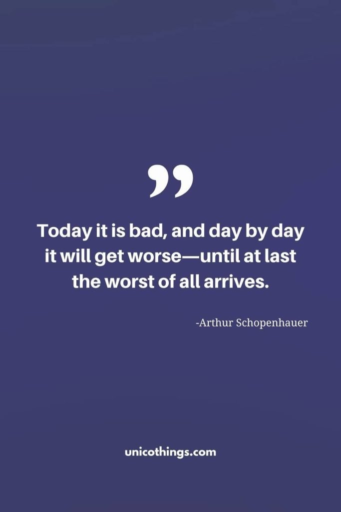 36. “Today it is bad, and day by day it will get worse―until at last the worst of all arrives.” – Arthur Schopenhauer