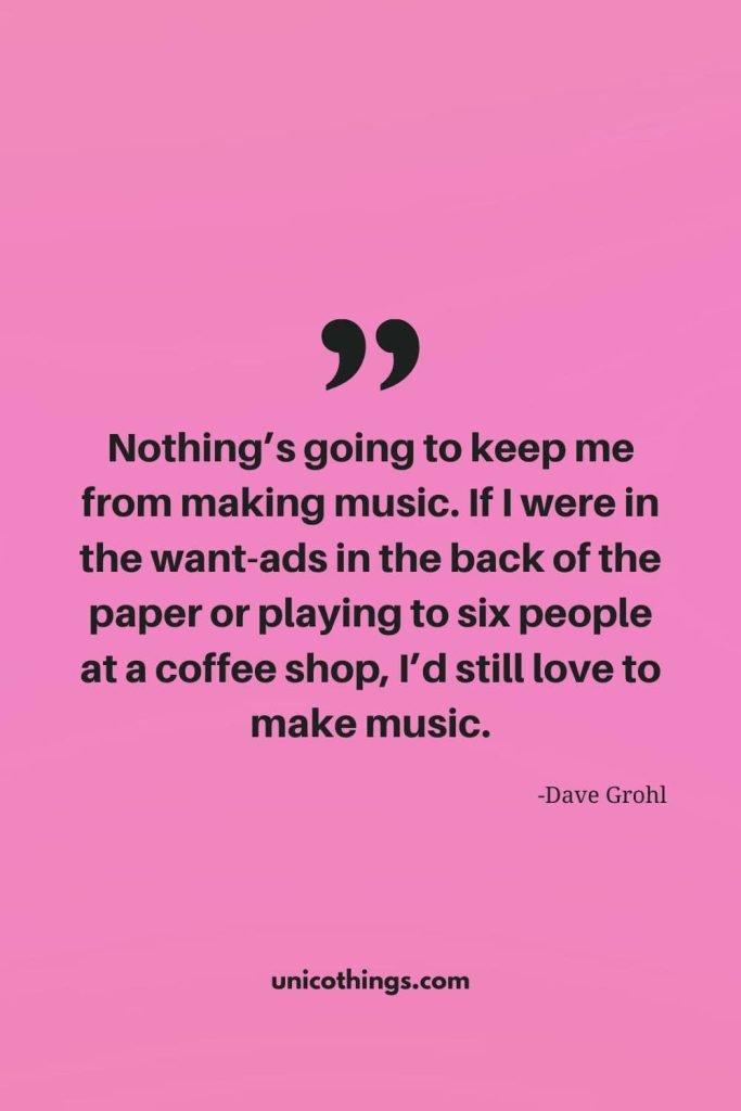 72. “Nothing’s going to keep me from making music. If I were in the want-ads in the back of the paper or playing to six people at a coffee shop, I’d still love to make music.” – Dave Grohl