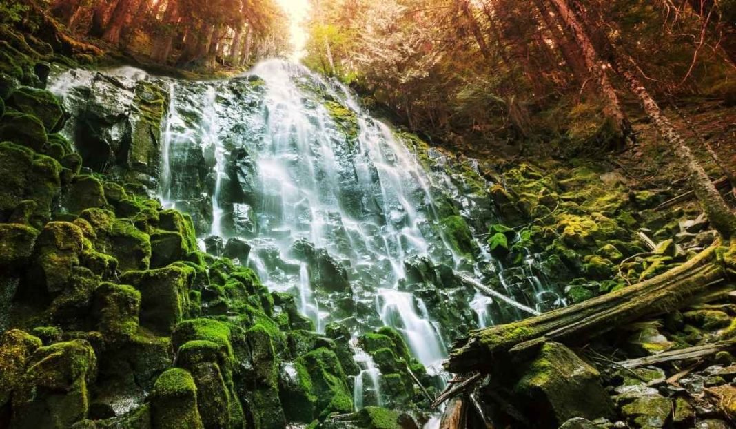Tucked into the lush wilderness near Mount Hood, Ramona Falls isn’t your average waterfall — it’s a cascading wall of lace-like beauty pouring down basalt rock, surrounded by moss-covered trees and total Oregon mystique.