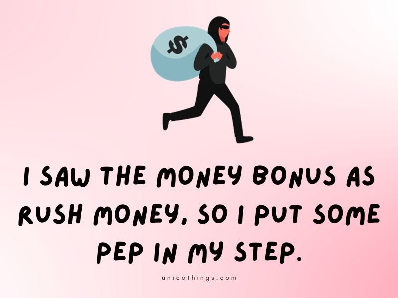 11. I saw the money bonus as rush money, so I put some pep in my step.