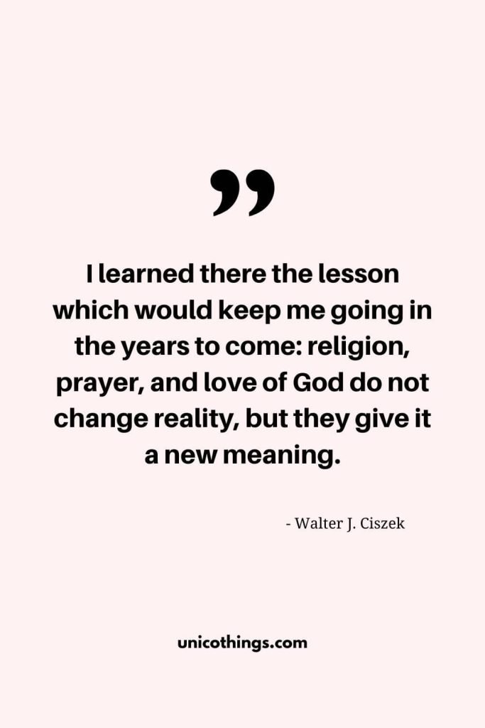 20. “I learned there the lesson which would keep me going in the years to come: religion, prayer, and love of God do not change reality, but they give it a new meaning.” – Walter J. Ciszek