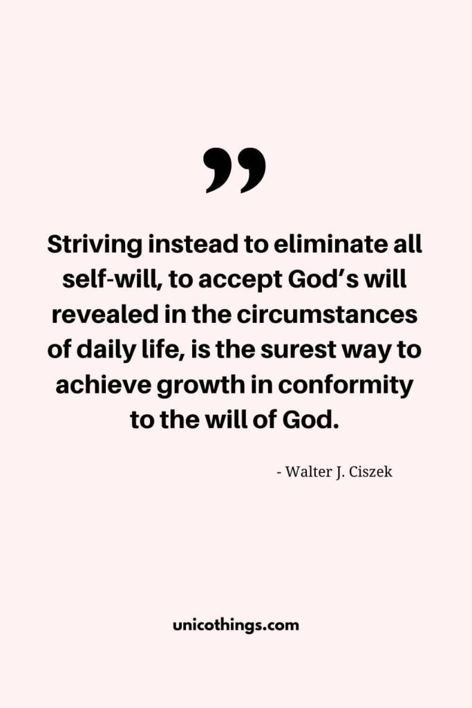 41. “Striving instead to eliminate all self-will, to accept God’s will revealed in the circumstances of daily life, is the surest way to achieve growth in conformity to the will of God.” – Walter J. Ciszek