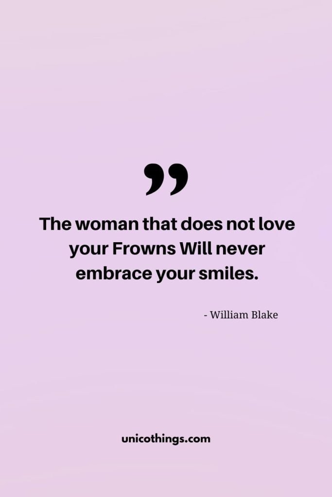 12. “The Woman that does not love your Frowns Will never embrace your smiles.” – William Blake